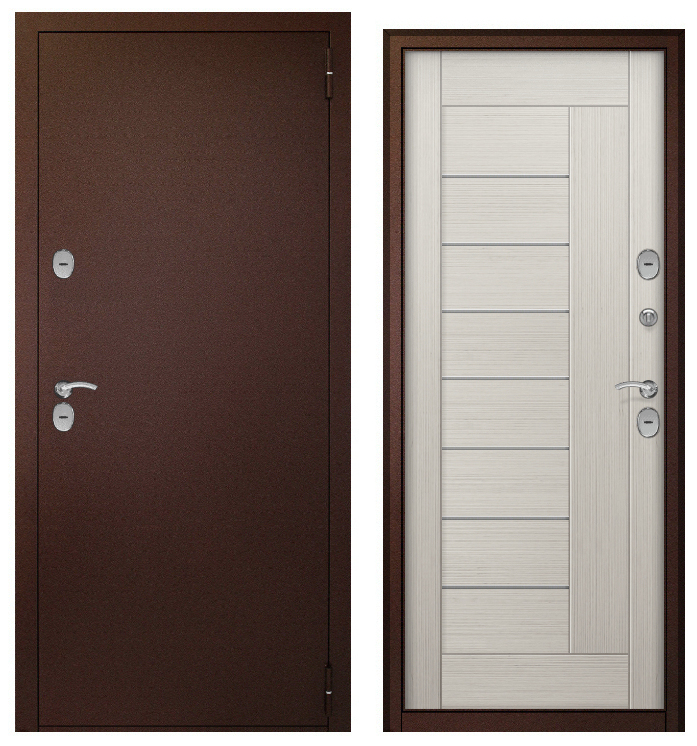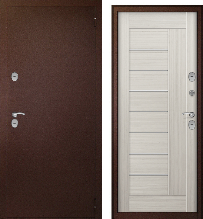 Дверь металл ТермоБокс (медь,ЦАРГА 22мм+молдинг, ПВХ Бьянко, 2 петли, ф-ра хром)