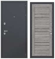 Дверь мет. Агрия Царга 16мм, шагрень 7024, МДФ клен грей, черное стекло (2050*860, левая)