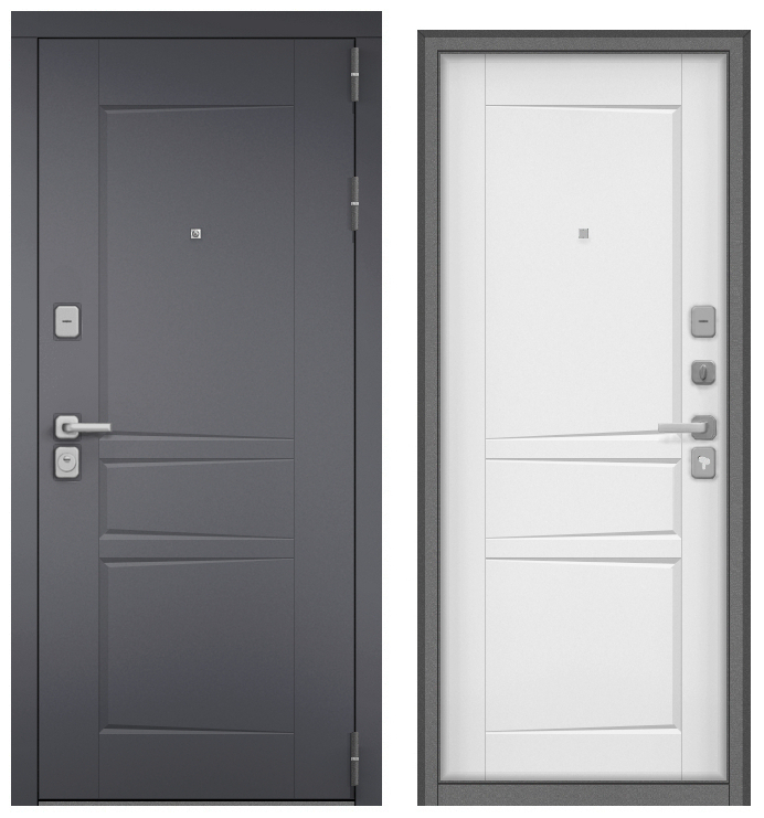 Дверь металл Челси (МДФ силк титан/МДФ белый матовый) (2050*860, правая, серый муар, хром матовый)