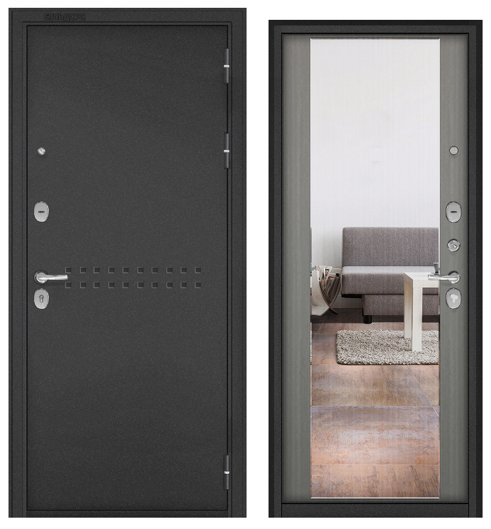 Бульдорс ТРАСТ МАСС, тисн.Р-4, МДФ орех пепельный 9С-164 зеркало (2050*860, правая, букле антрацит, хром)