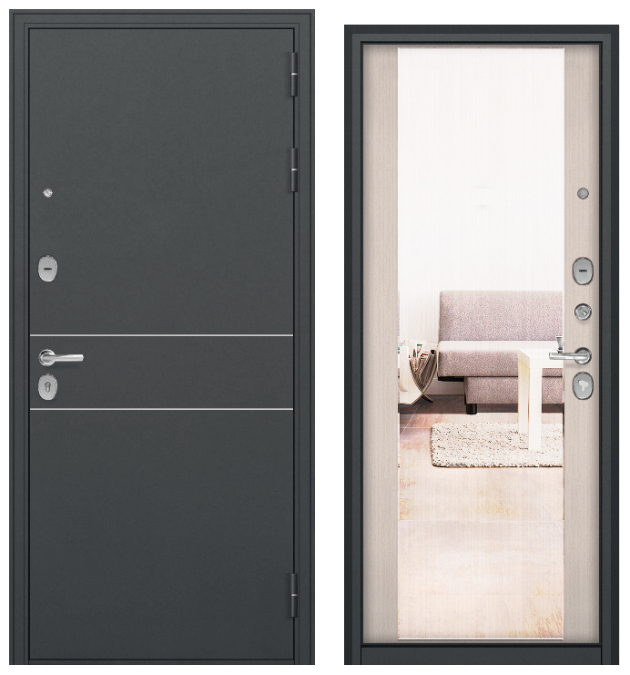 TRUST MASS, D-16, МДФ ларче бьянко 9S-164 зеркало (2050*860, правая, серый муар, хром)
