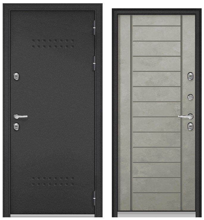 ТЕРМОРАЗРЫВ (СПЛИТ) MP, тисн.Р-5, МДФ бетон серый 10ТС-137 (2050*880, правая, нержавеющий порог, букле антрацит, хром, термо)