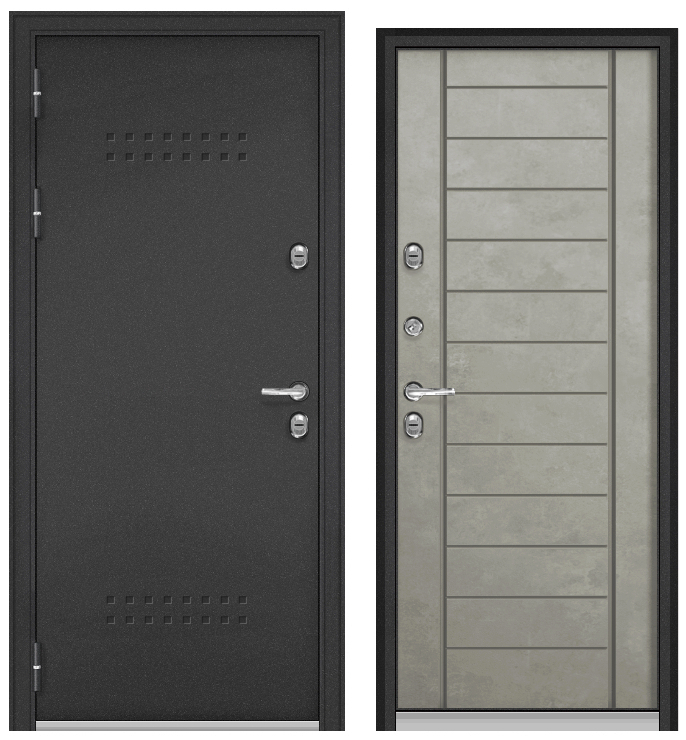 ТЕРМОРАЗРЫВ (СПЛИТ) MP, тисн.Р-5, МДФ бетон серый 10ТС-137 (2050*960, левая, нержавеющий порог, букле антрацит, хром, термо)