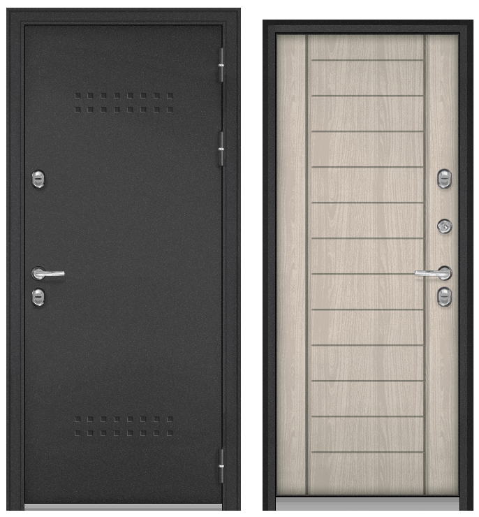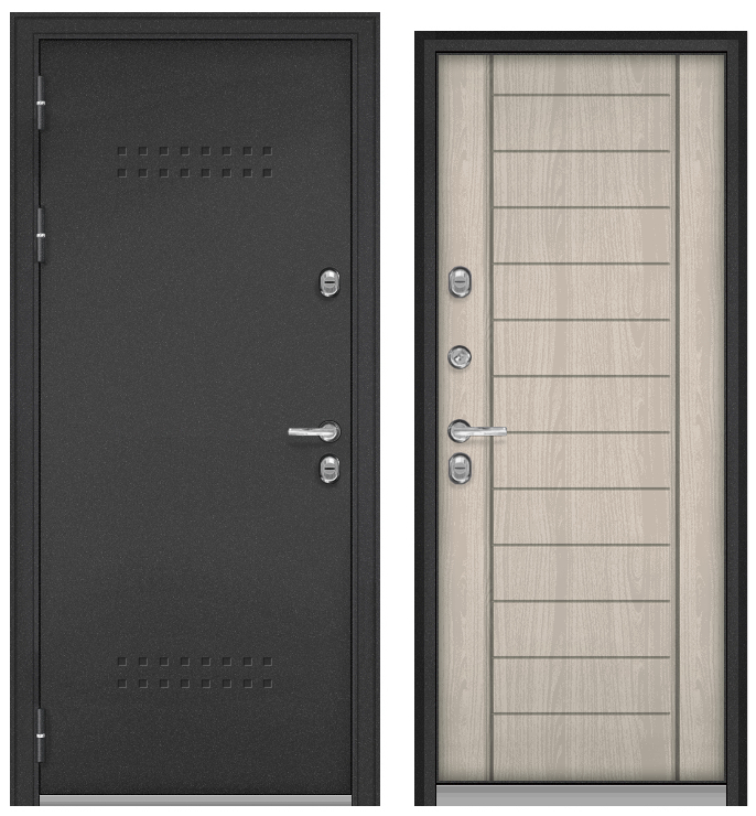 ТЕРМОРАЗРЫВ (СПЛИТ) MP, тисн.Р-5, МДФ ясень ривьера айс 10ТС-137 (2050*880, левая, нержавеющий порог, букле антрацит, хром)