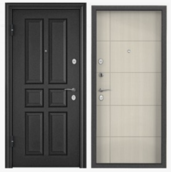 Дверь металл ТОРЭКС ДЭЛЬТА ПРО MP, т-сер.букле графит ВДМ-1, ПВХ БЕЛ перламутр, Д6-23, хром, маг
