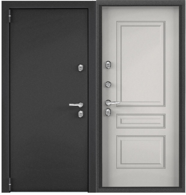 Дверь металл ТОРЭКС СНЕГИРЬ ПРО MP, т-сер букле графит, ПВХ Бьянко, С60-С3, хром, НАКЛ (2050*880, L, левая, термо)
