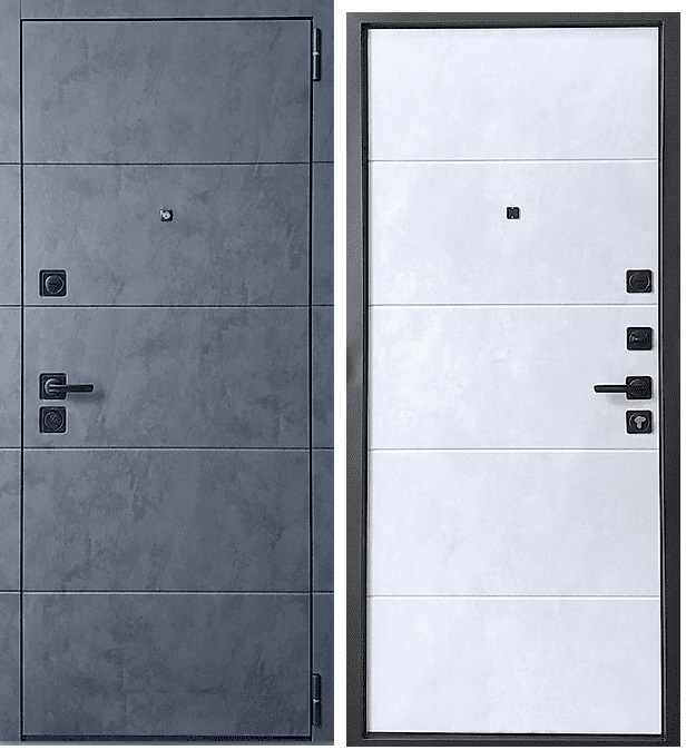 Тульские двери Б80 ЛОФТ НОВ,черн.муар, МДФ Бетон графит/МДФ бетон снежный, два контура, черн фурн.