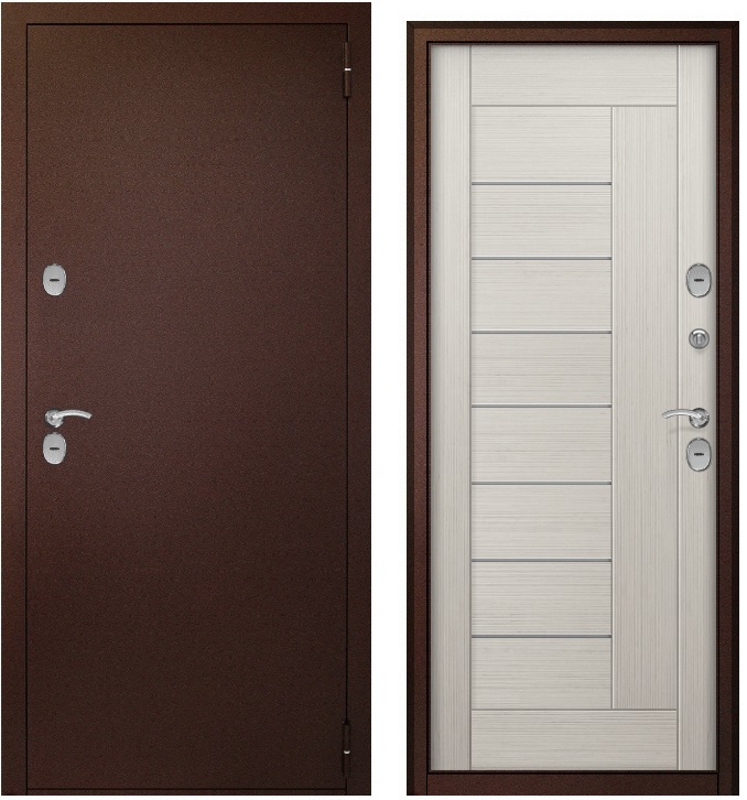 Тульские двери ТЕРМОБОКС Бьянко(медь,ЦАРГА 22мм+молдинг, ПВХ Бьянко, 2 петли, ф-ра хром)