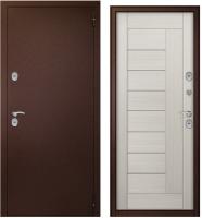 Тульские двери ТЕРМОБОКС Бьянко(медь,ЦАРГА 22мм+молдинг, ПВХ Бьянко, 2 петли, ф-ра хром) (2050*960, левая, термо)
