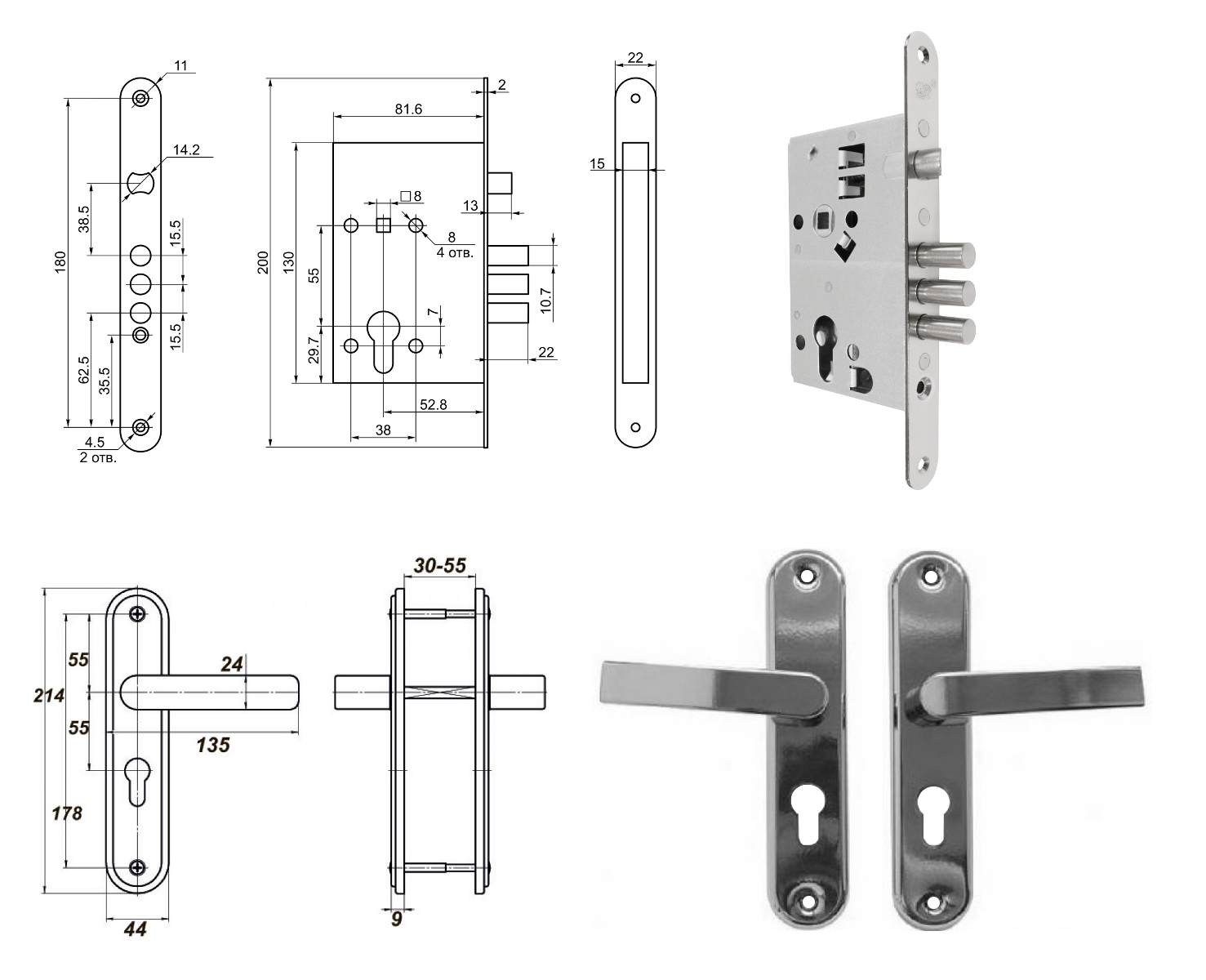Замок врезной ПРОСАМ ЗВ4/31.55 (замок+ ручки ХРОМ)