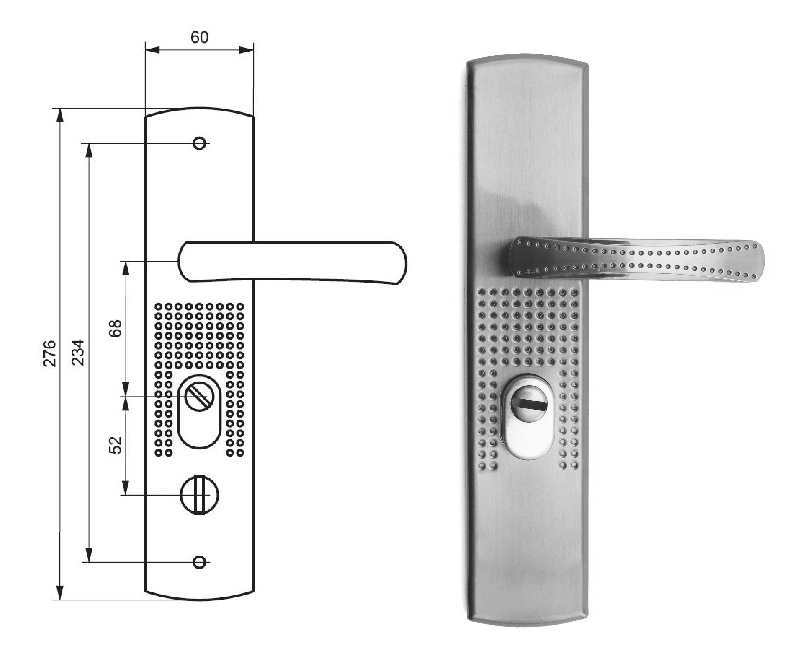 Описание: Ручка сплошная A, рекомендована для установки в металлическую дверь с толщиной профиля 66 мм.