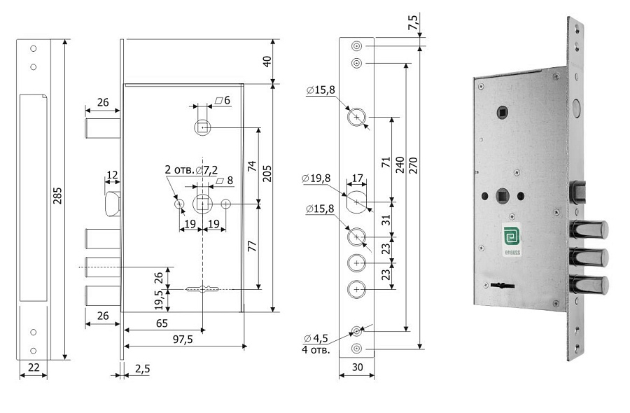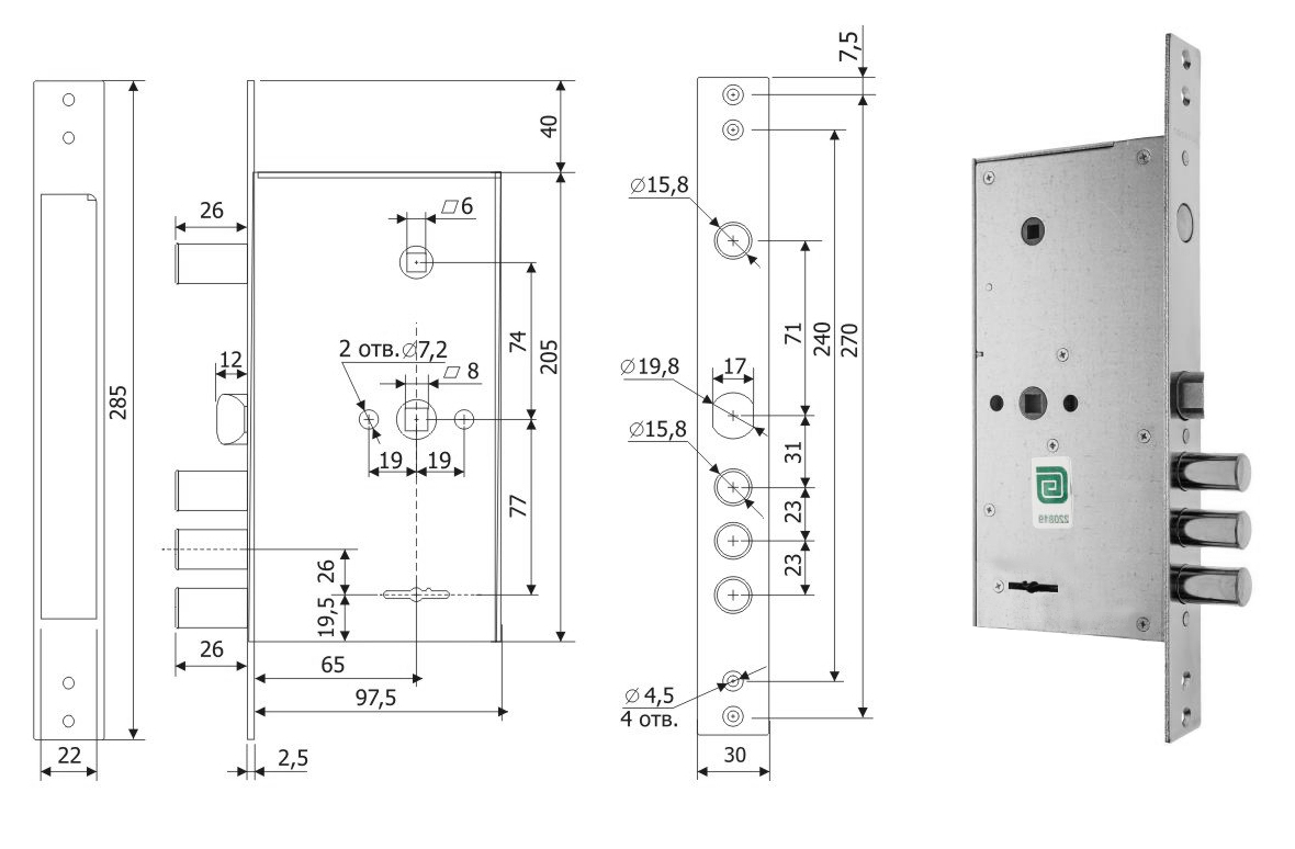 Замок врезной сувальдный Гардиан 3015 (ДЛИННЫЙ КЛЮЧ)