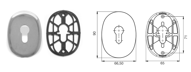Накладка БОН овальная (90х65мм) (хром) (под цилиндр)