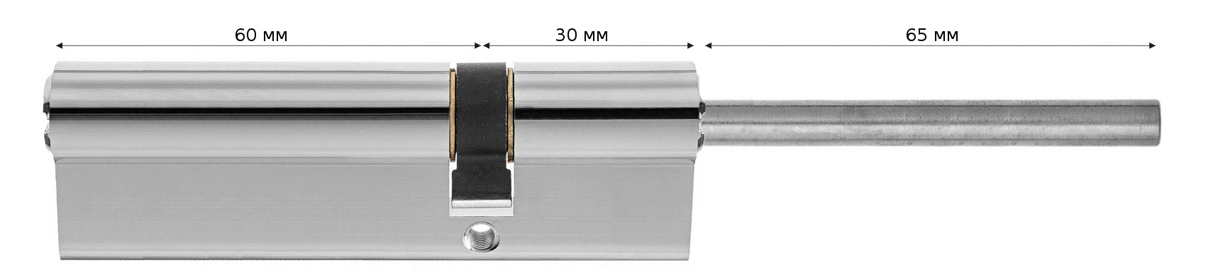 Цилиндровый механизм 55+10+25 мм (60*30) (ключ/шток, хром, БЕЗ вертушка)