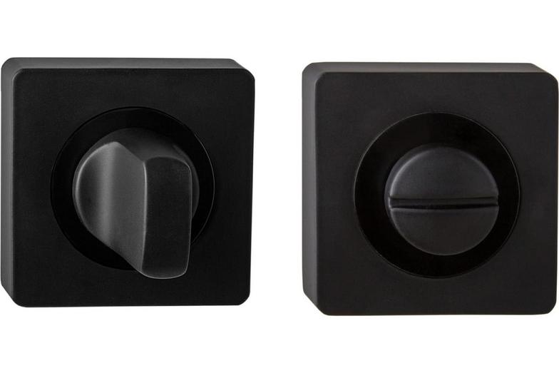 Завертка выполнена в стилистике дверных ручек, имеет тот же цвет, аналогичную форму розетки и снабжена удобным поворотным вертушком.