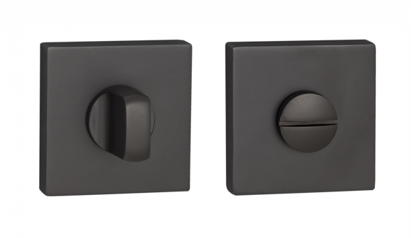 Завертка выполнена в стилистике дверных ручек, имеет тот же цвет, аналогичную форму розетки и снабжена удобным поворотным вертушком.