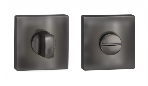 Завертка выполнена в стилистике дверных ручек, имеет тот же цвет, аналогичную форму розетки и снабжена удобным поворотным вертушком.