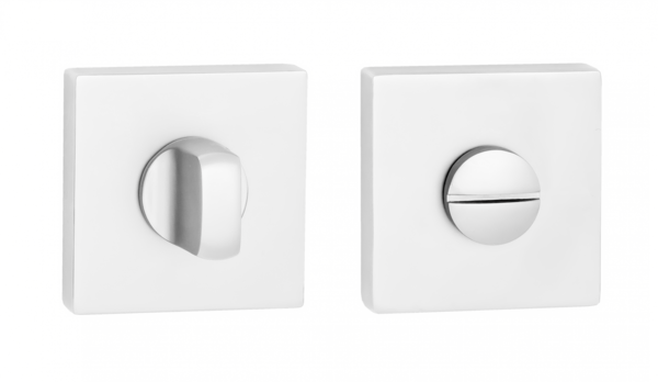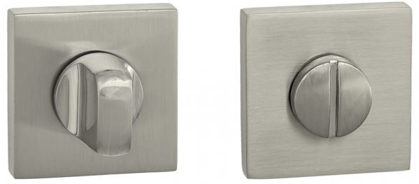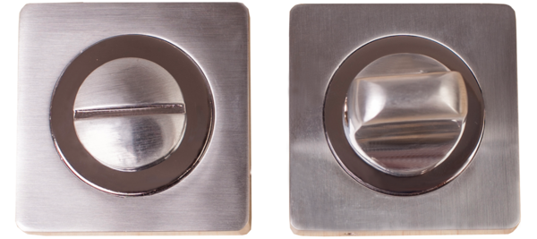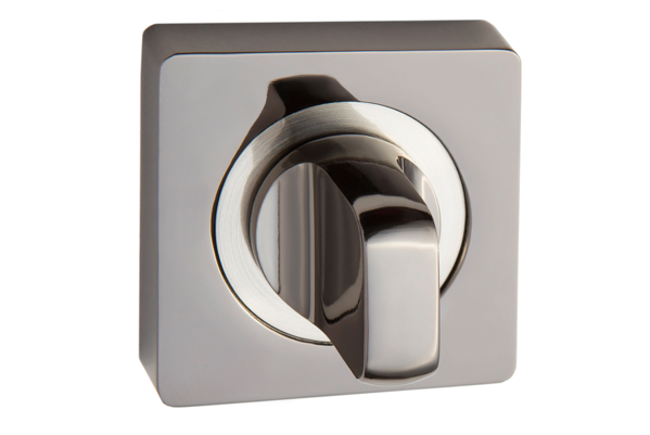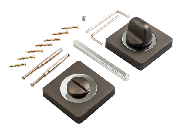 Завертка выполнена в стилистике дверных ручек, имеет тот же цвет, аналогичную форму розетки и снабжена удобным поворотным вертушком.